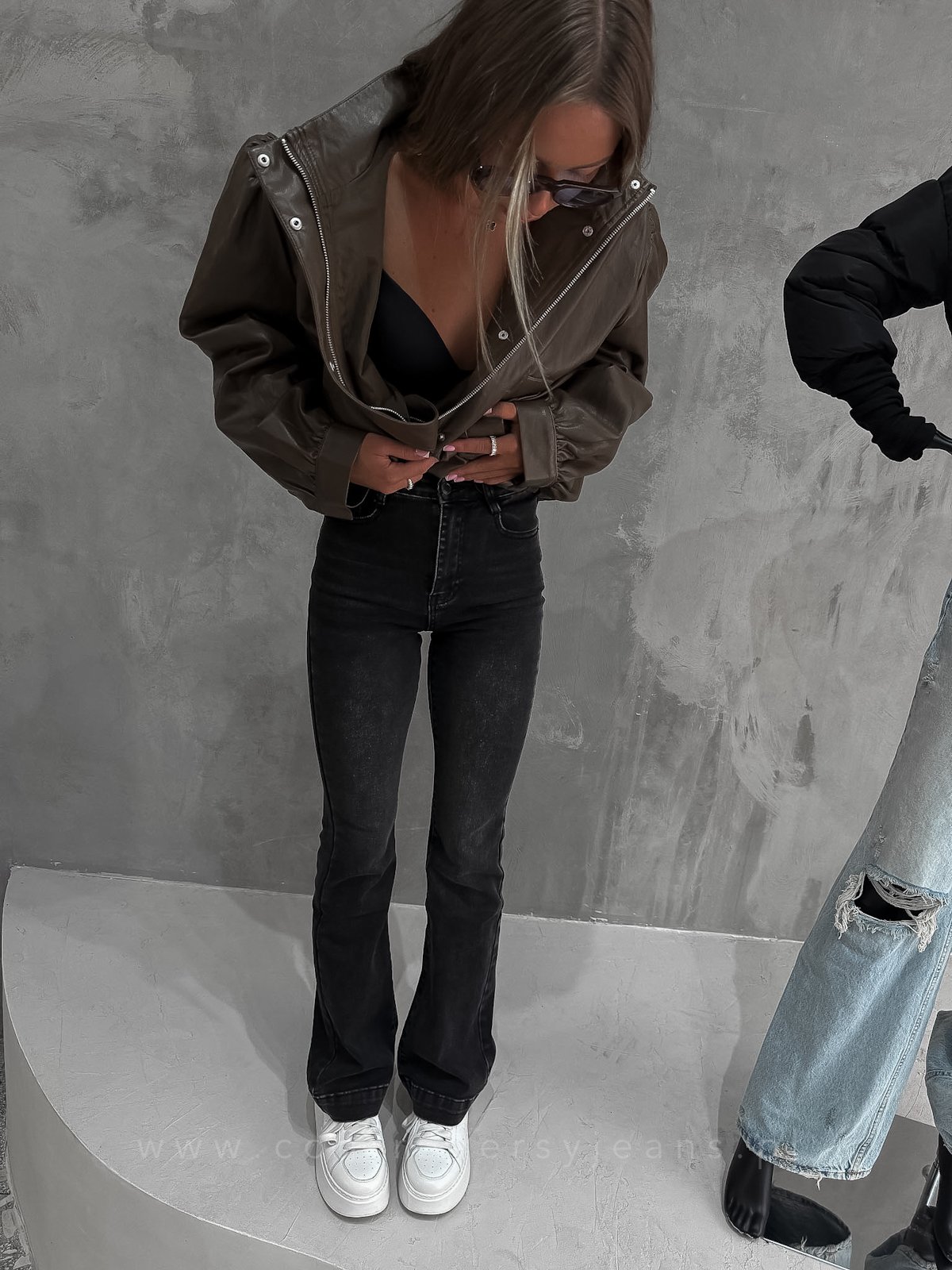 Wybierz jeansy, które będą idealną bazą Twoich codziennych i eleganckich outfitów. Komfort, styl i uniwersalność w jednym – to wszystko oferują ciemnoszare jeansy flare z wysokim stanem.