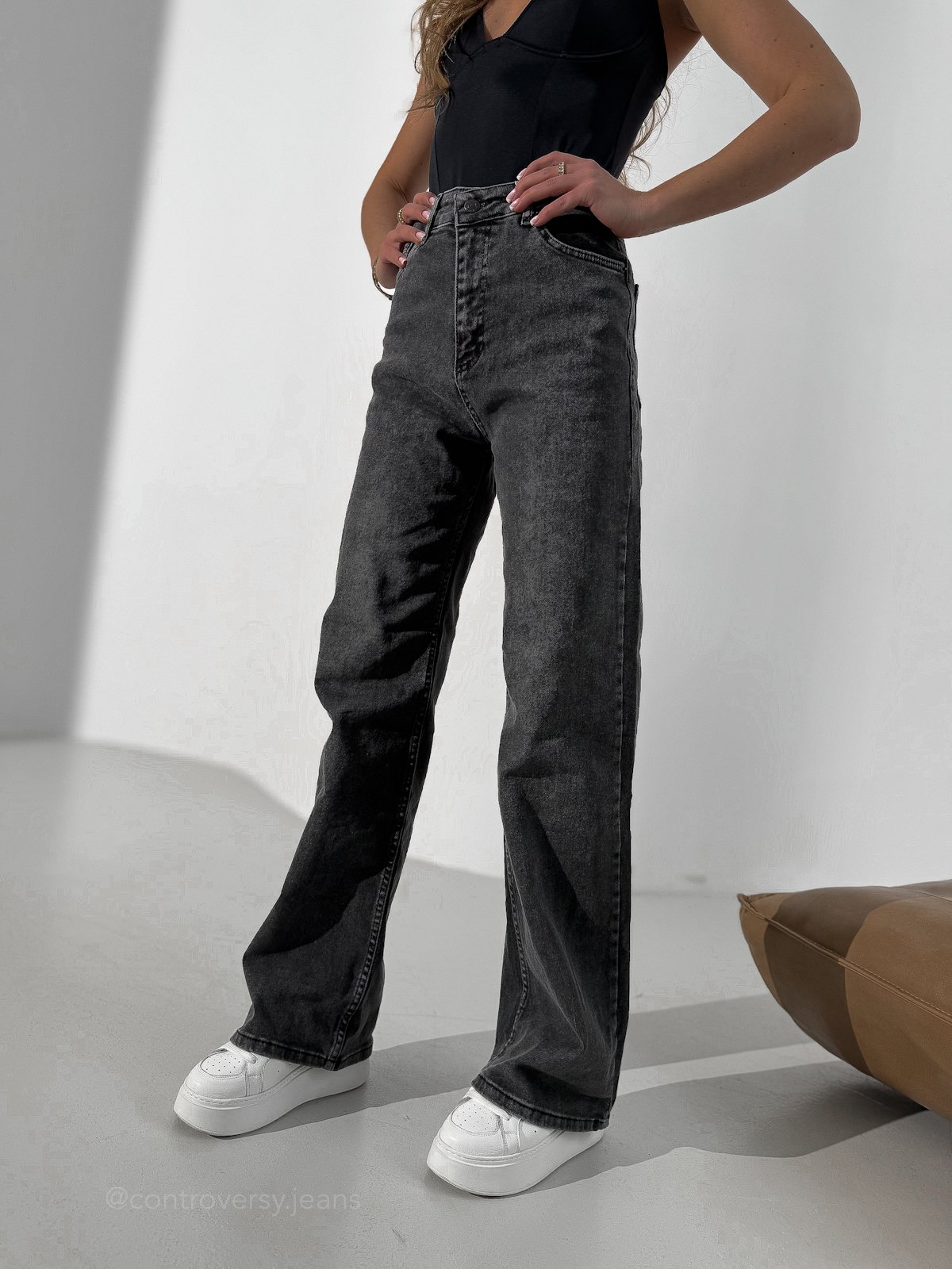 Jeansy wykonane są z wysokiej jakości denimu w kolorze ciemnoszarym. To uniwerski odcień, który z łatwością dopasujesz do różnych stylizacji. Ciemna szarość stanowi elegancką alternatywę dla klasycznego niebieskiego lub czarnego denimu. Świetnie komponuje się zarówno z jasnymi, jak i ciemnymi elementami garderoby, pozwalając na tworzenie zestawów casualowych, miejskich oraz półeleganckich.