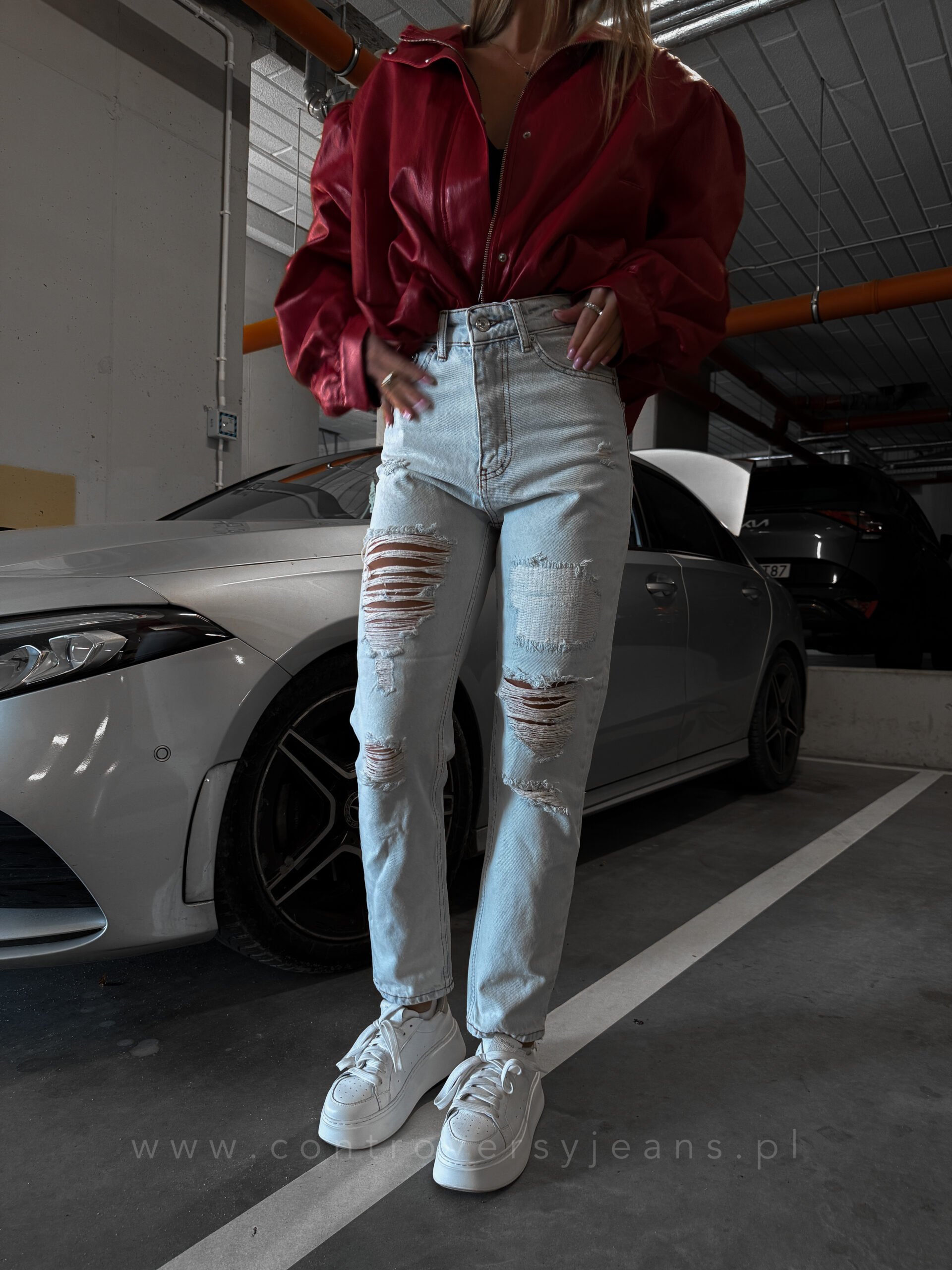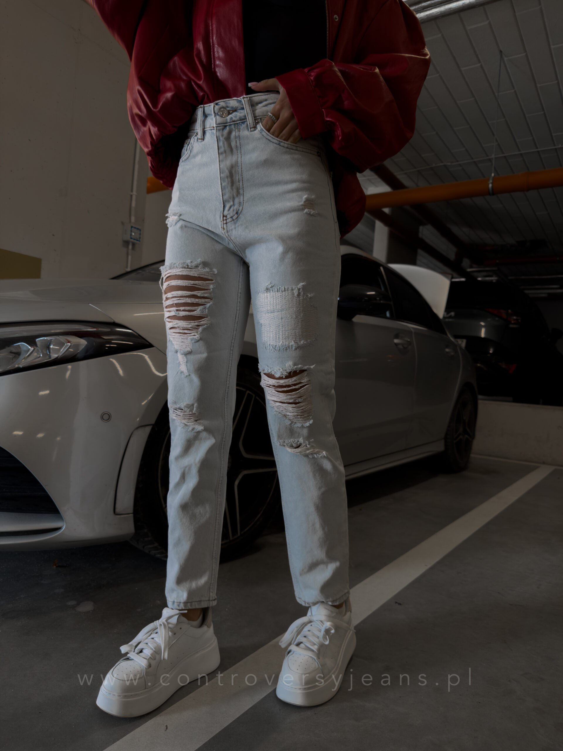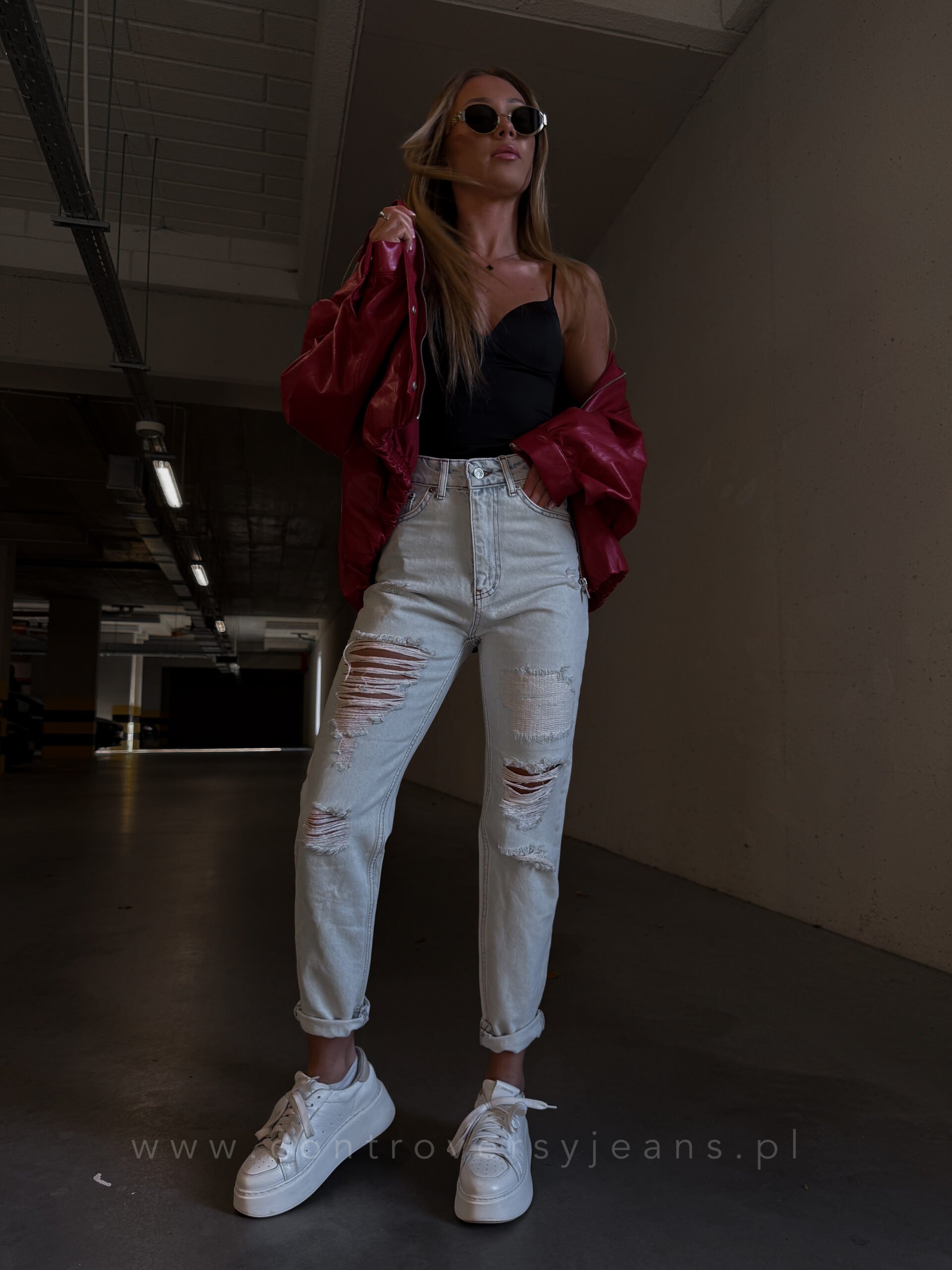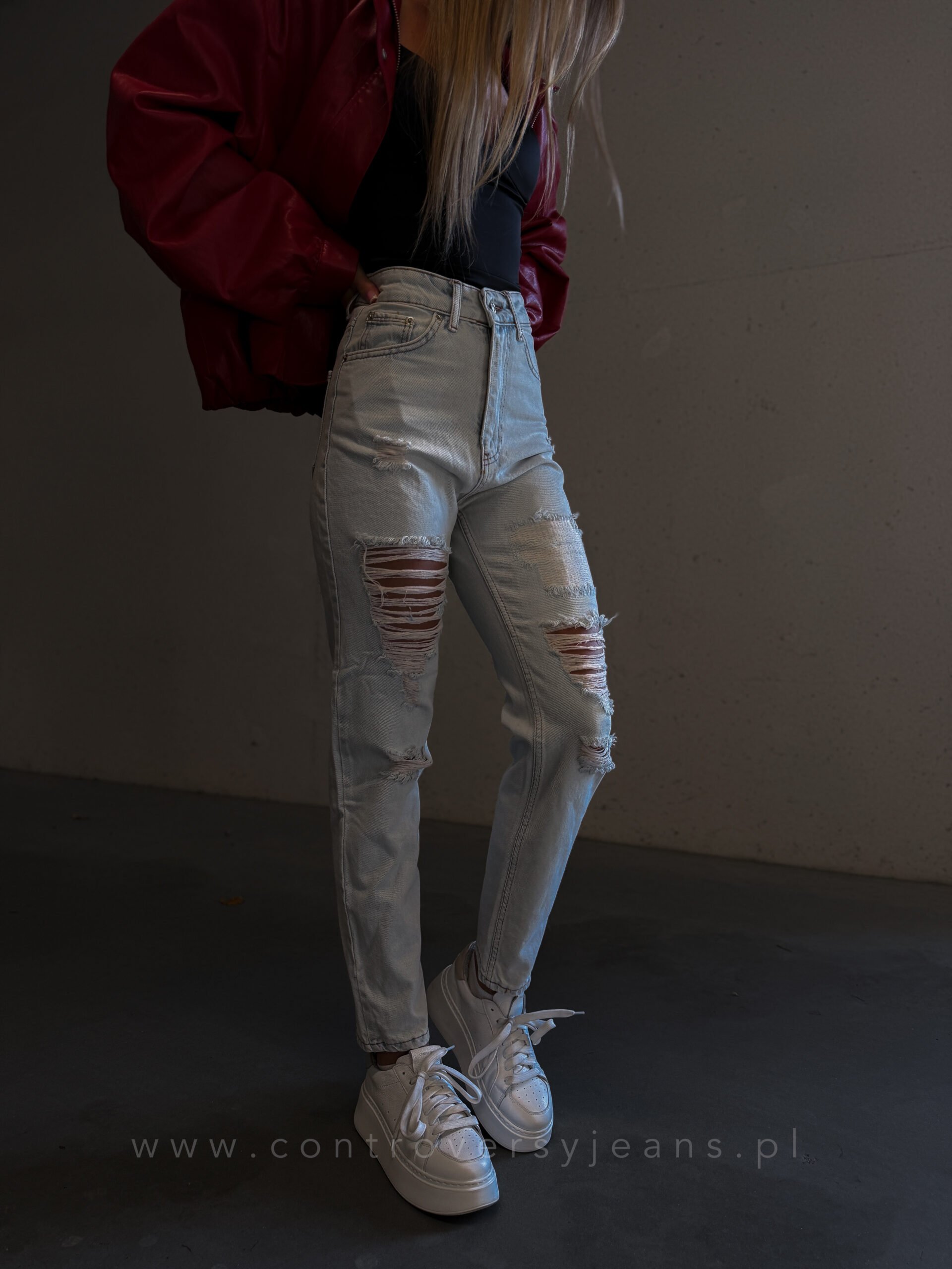 Model mom fit z wysokim stanem pięknie podkreśla talię i wysmukla sylwetkę. Luźniejszy krój nogawek zapewnia wygodę i swobodę ruchów, a modne przetarcia i dziury nadają spodniom charakteru, tworząc casualowy, nowoczesny look. To idealne jeansy damskie z dziurami mom fit od Controversy dla kobiet, które cenią trwałość, wysoką jakość i ponadczasowy design.