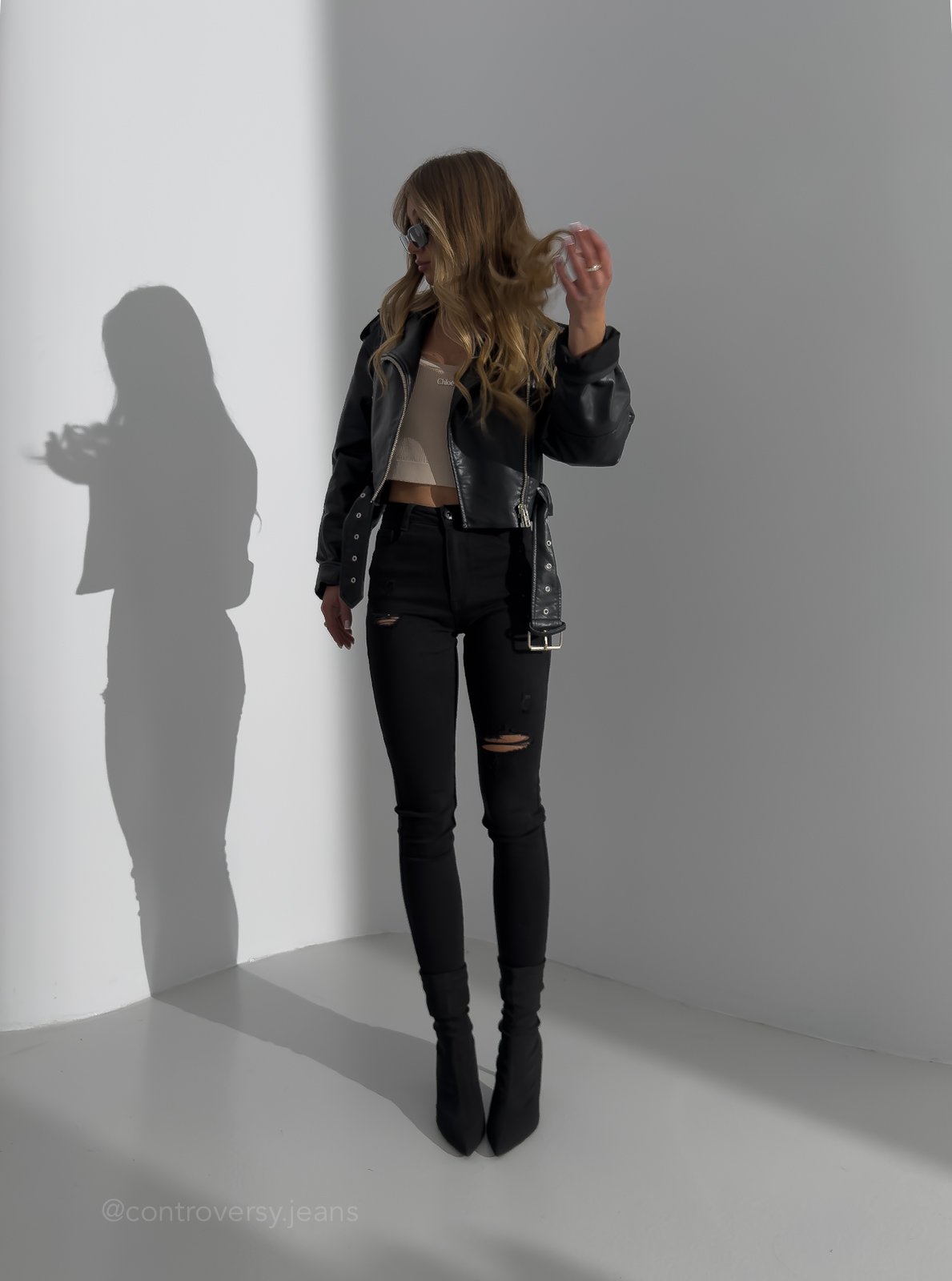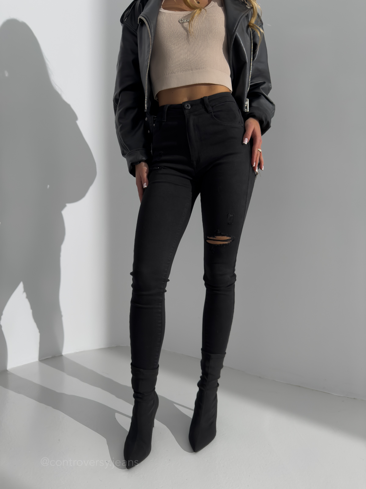 Czarna kolorystyka sprawia, że są to niezwykle uniwersalne damskie rurki czarne, które łatwo dopasować do każdej stylizacji. Subtelne, małe przetarcia dodają im nowoczesnego charakteru, nie odbierając elegancji. Świetnie komponują się z T-shirtem, swetrem, marynarką czy koszulą, a także z obuwiem sportowym lub na obcasie.