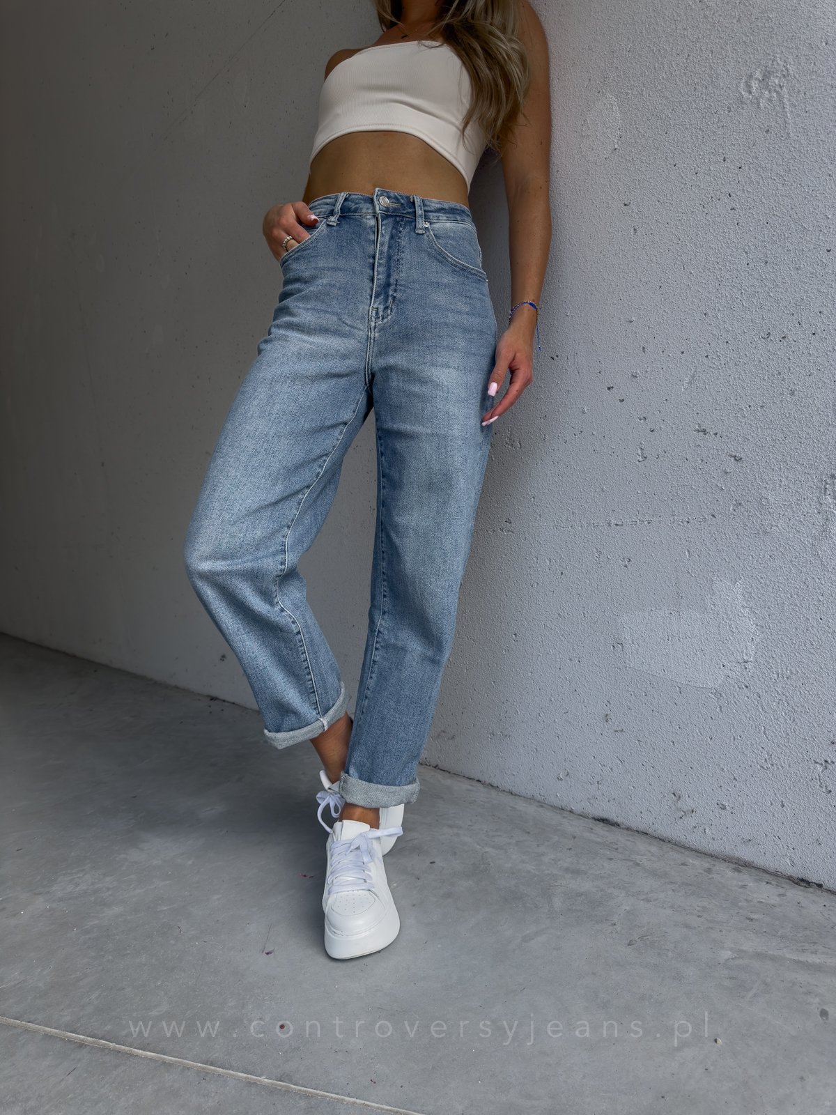 Wskocz w niebieskie jeansy mom fit z przejaśnieniami i noś je po swojemu – codziennie, wygodnie, z luzem i stylem. Moda może być komfortowa!