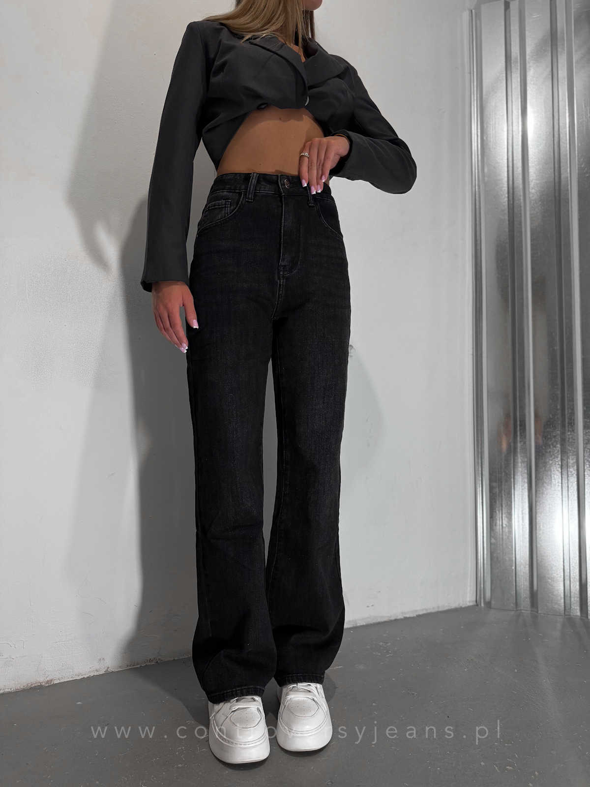 Szerokie jeansy flare to trend, który wraca w wielkim stylu – nadają sylwetce lekkości, a ich luźny krój zapewnia swobodę ruchu. Wysoki stan modeluje talię i podkreśla kobiece kształty, tworząc piękną linię nóg. Ten fason to doskonały wybór zarówno do codziennych stylizacji, jak i bardziej eleganckich zestawów.